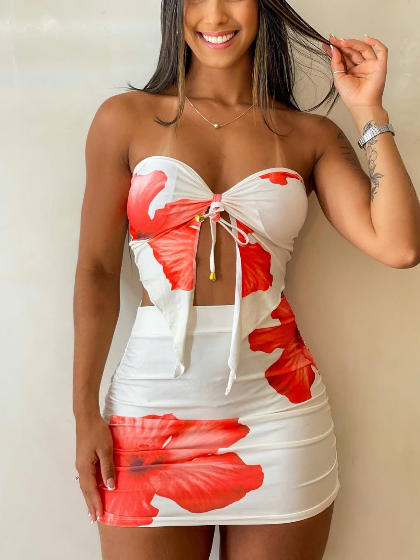 Apricot Color Printed Petal Pattern Women's Tube Top Breast