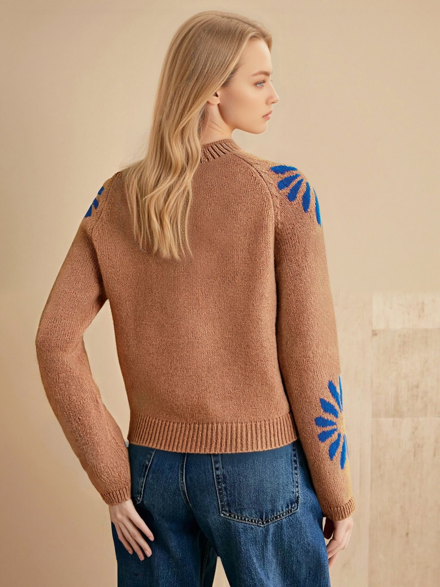 Autumn Winter Casual Clothes Long Sleeve round Neck Floral Sweater Women Loose