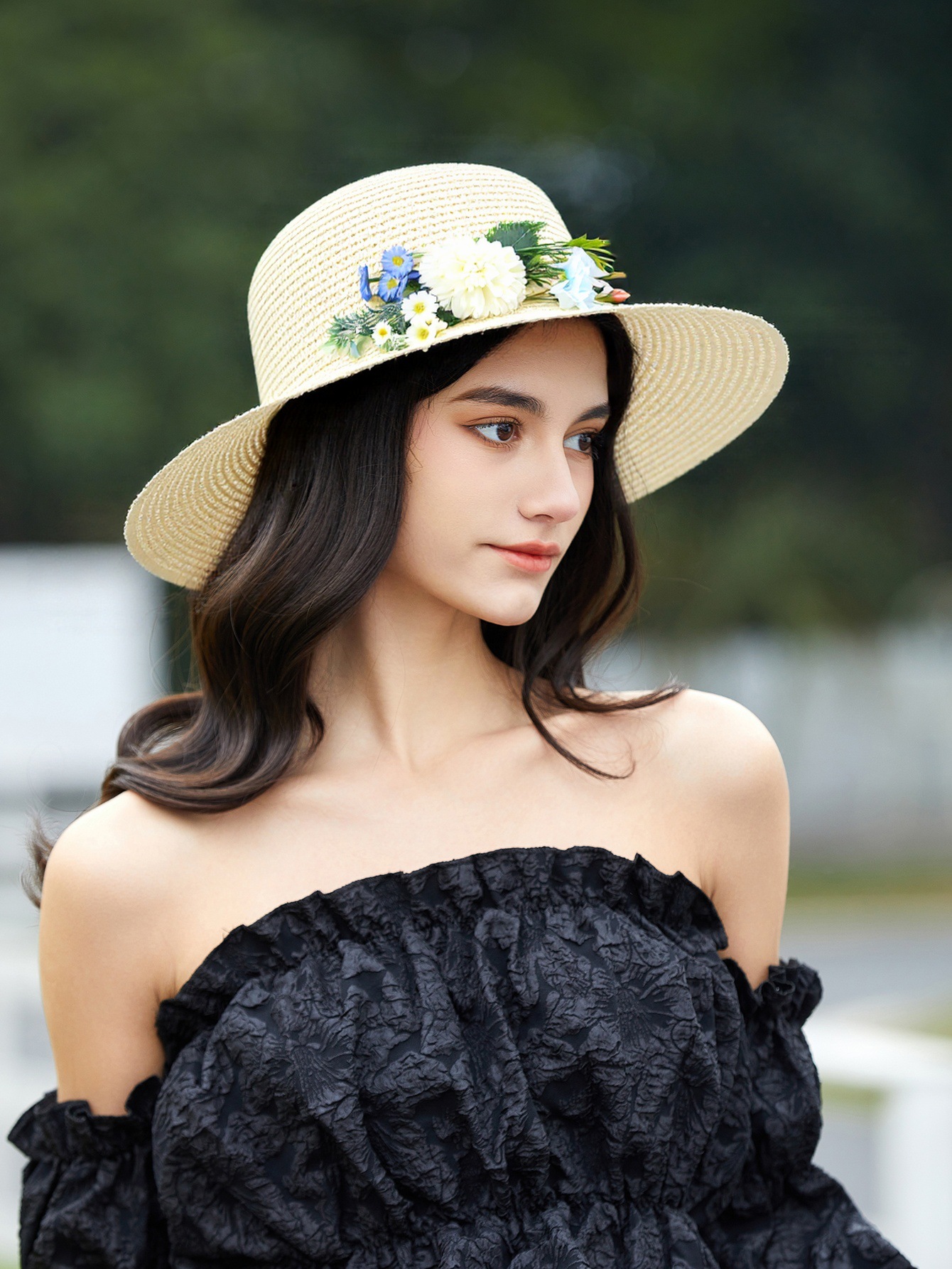 Bucket Hat Flat Brim Straw Hat Women Vacation Sun Hat French Floral Top Hat Sun Hat