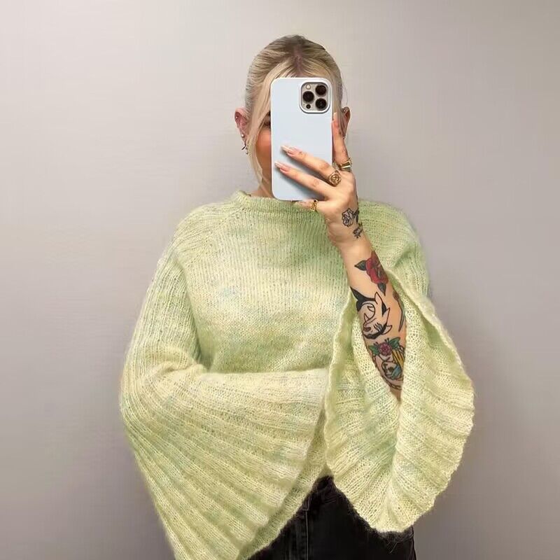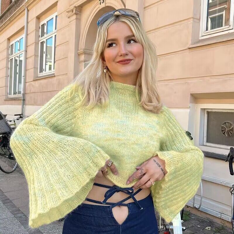 Round Neck Flared Sleeves Lazy Short Large Sweater Autumn All Matching Office Top Women Clothing
