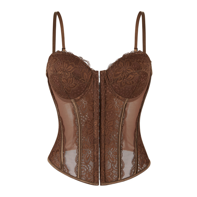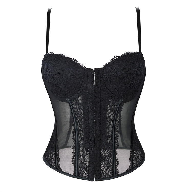 Sexy Push up Corset Eyelash Lace See through Sexy Sling Tunic