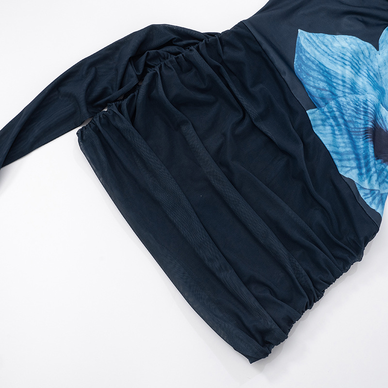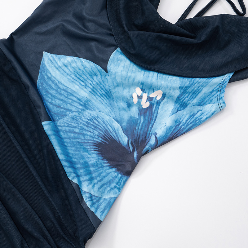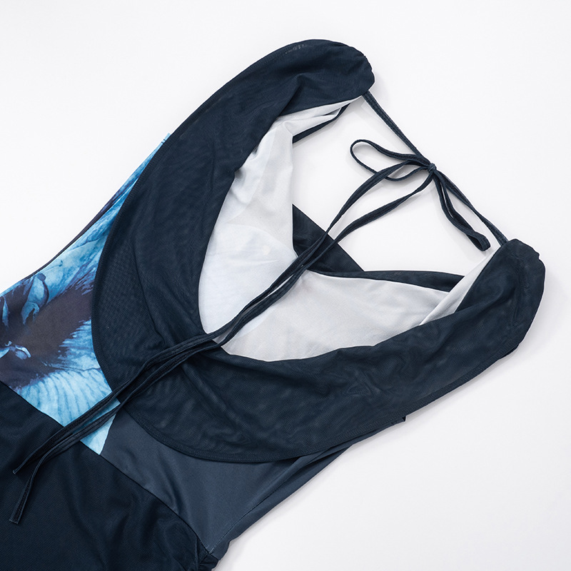 Summer Sexy Backless Swing Collar Printed Side Streamer Sheath Dress