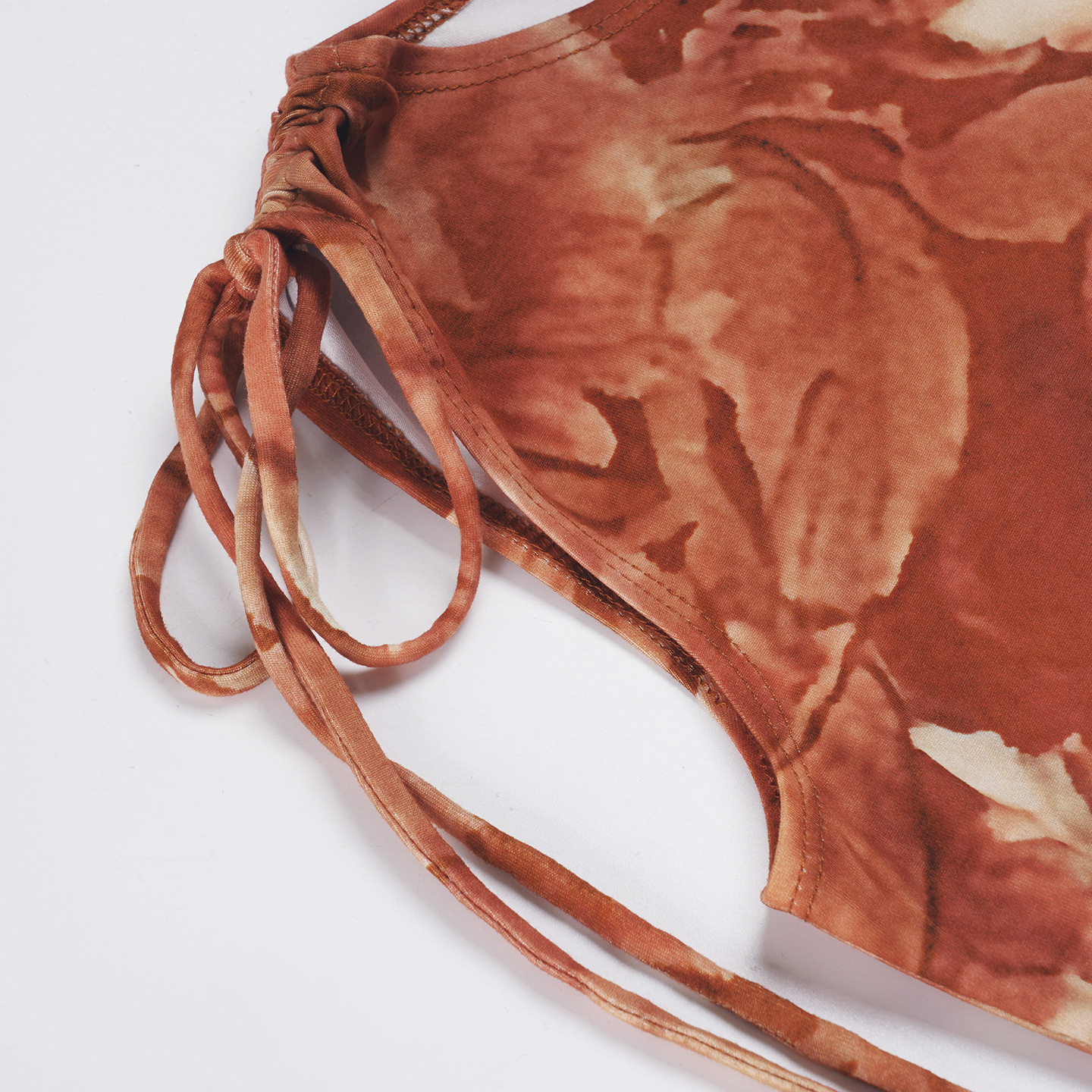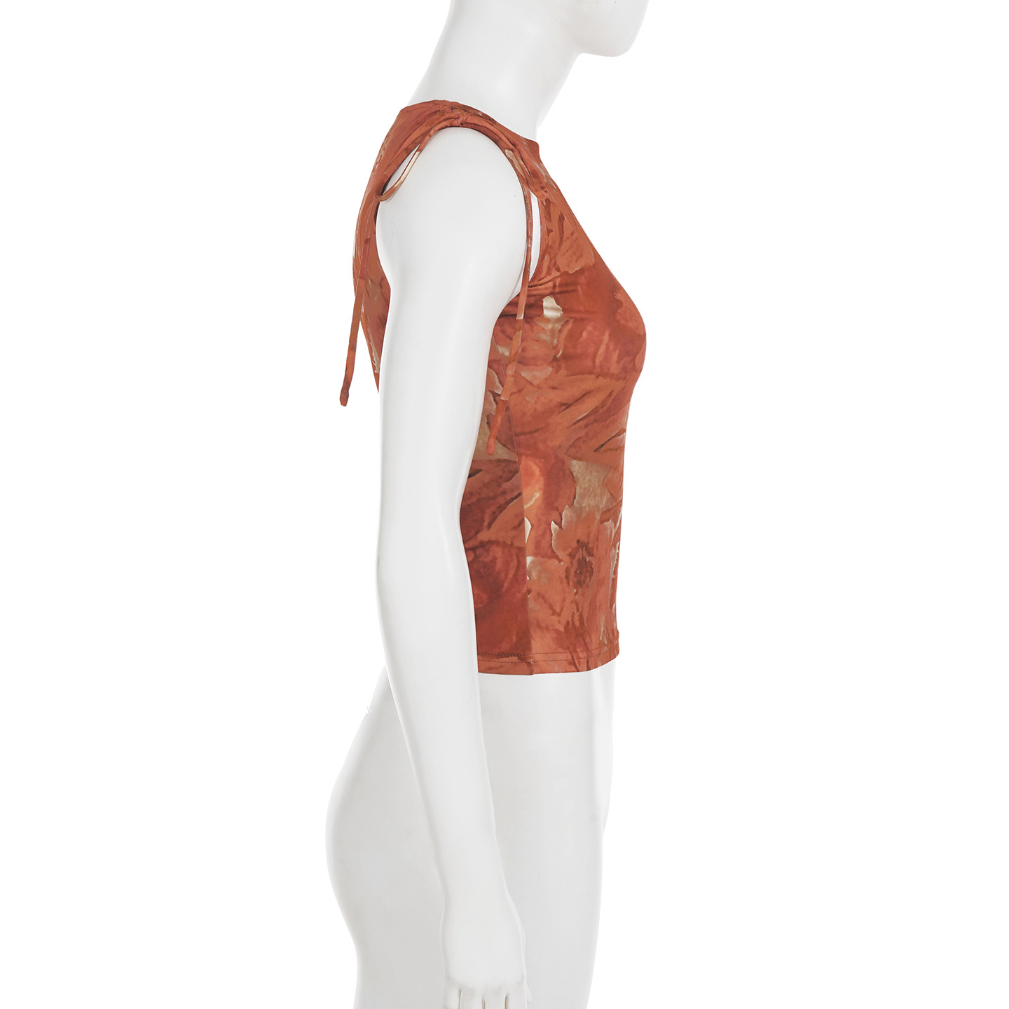 Summer Women Clothing Girl Vacation Colorful Floral Print Sleeveless Lace up Vest Women