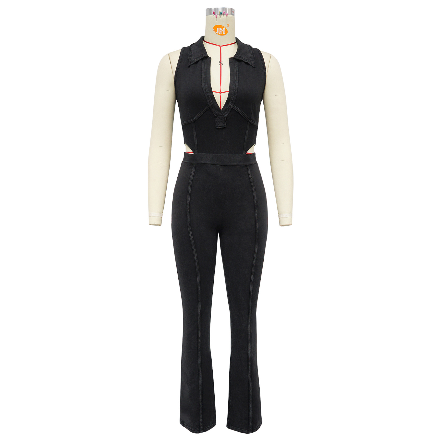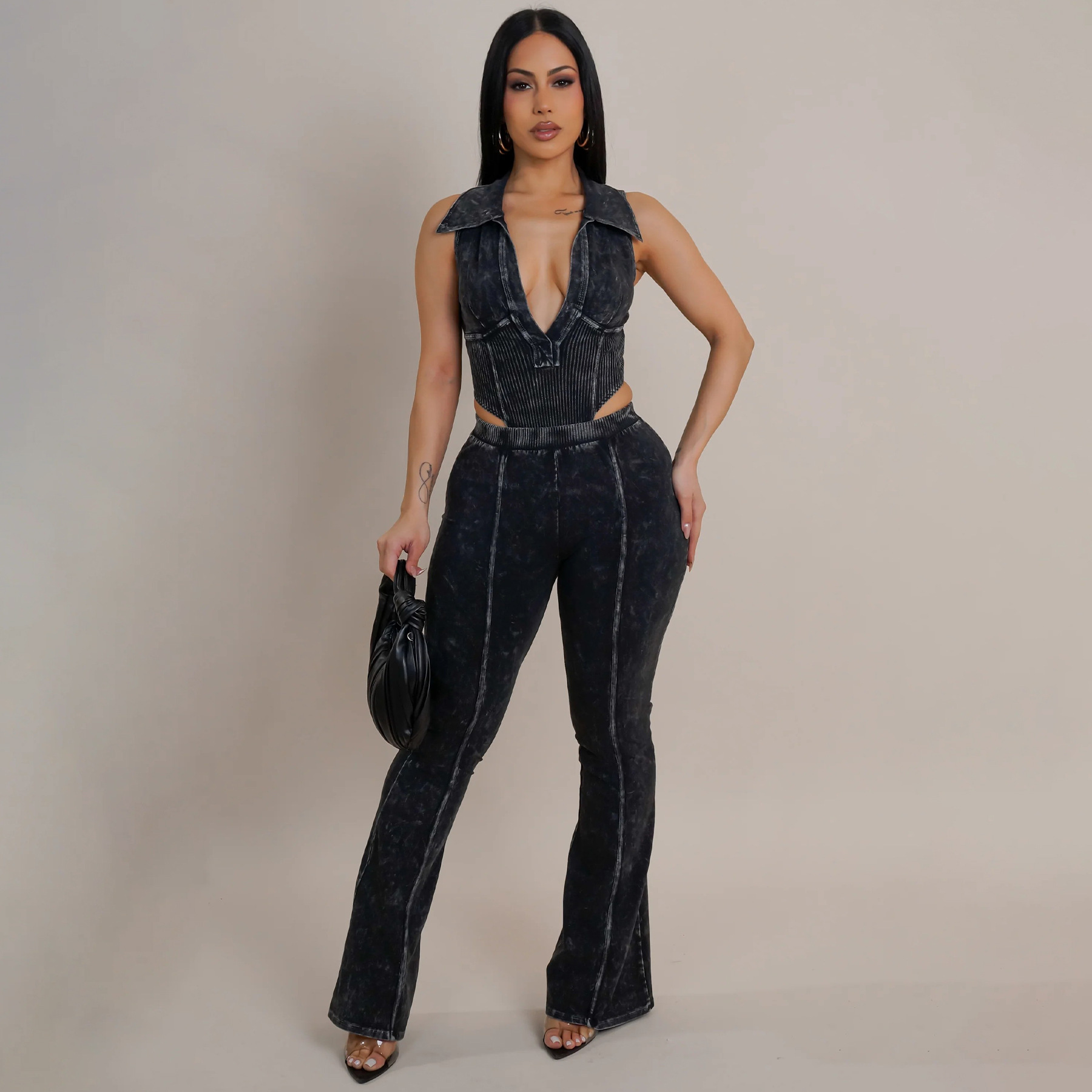 Women Wear Sexy Slim Washed Distressed Line Stitching Two Piece Sets